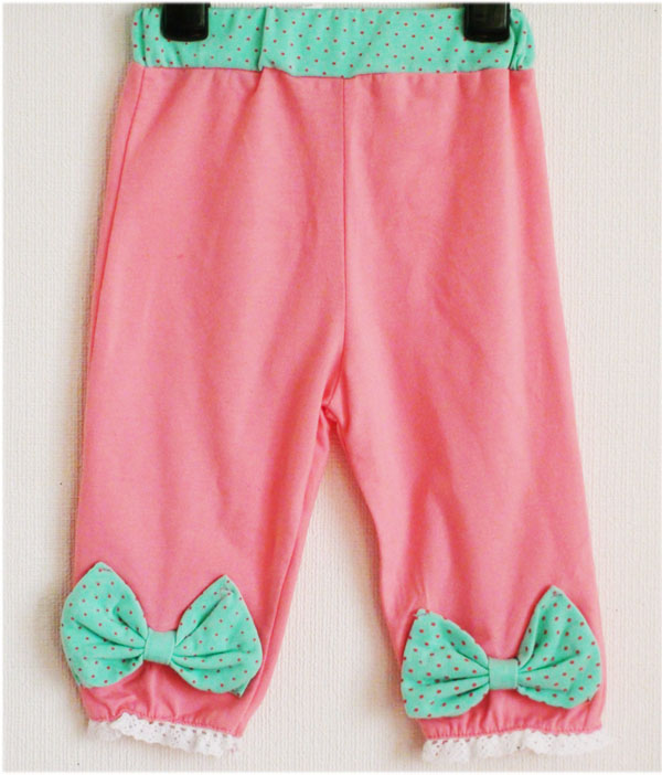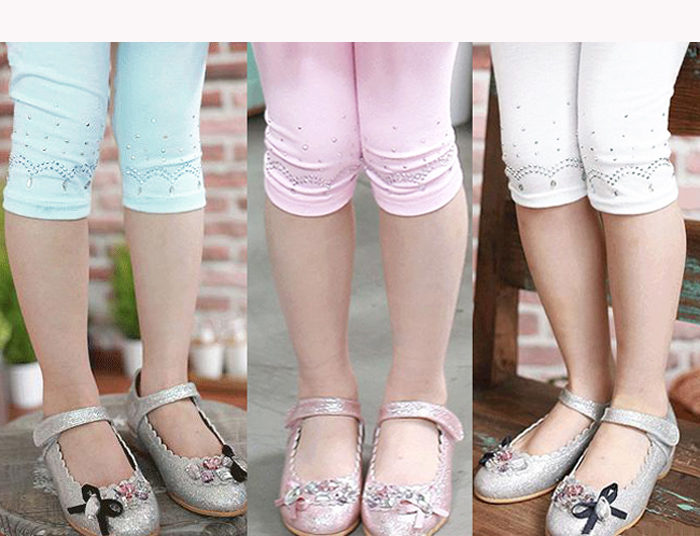 フラワーモチーフ&ラインストーン&レース付きのゴージャスな六分丈パンツキッズ ベビー マタニティ キッズファッション パンツ