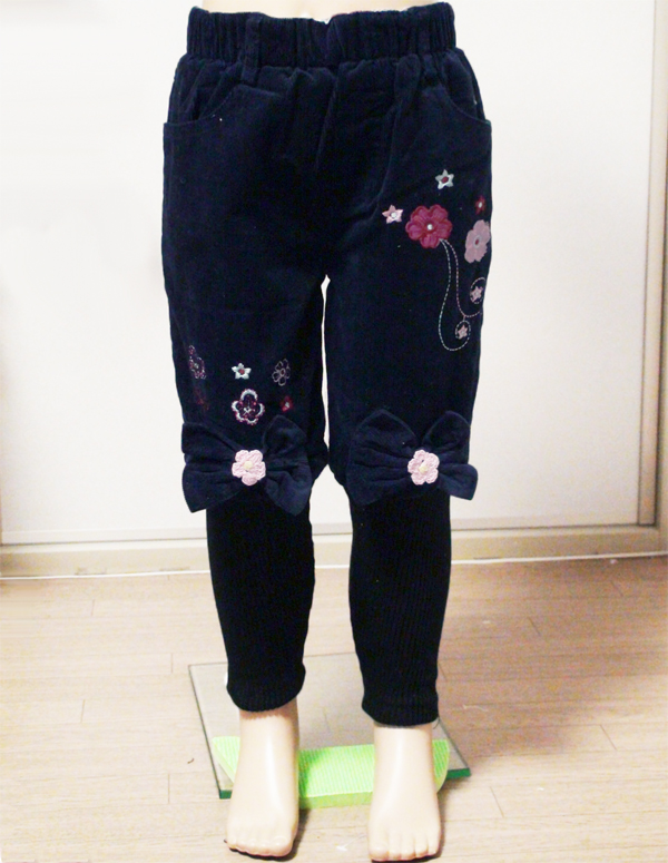 リボン付&フラワー刺しゅう入り♪裏起毛の超可愛いコール天パンツキッズ ベビー マタニティ キッズファッション パンツ