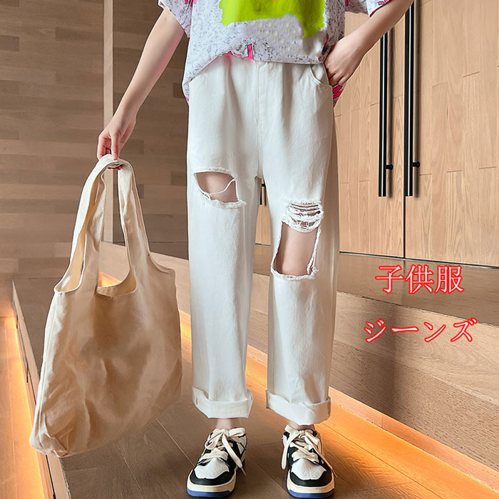 女の子 長ズボンダンス衣装 デニム パンツ キッズ ジュニア子供服 ジーンズ ワイドパンツ120 130 140 150 160 170