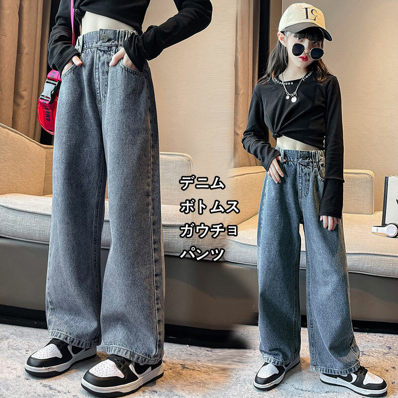 長ズボン ワイドパンツ パンツ 春夏 女の子 ジーンズ ジーパン カジュアル ロングパンツ ゆったり ロングパンツ ジーンズ 120cm130cm140cm150cm160cm170cm