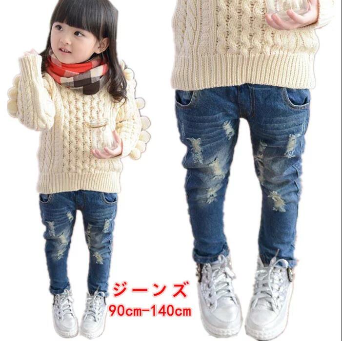 長ズボン 女の子 ダメージ ジーンズ デニムパンツ ダメージデニムパンツ デニムパンツ100cm 110 120 130 140 150