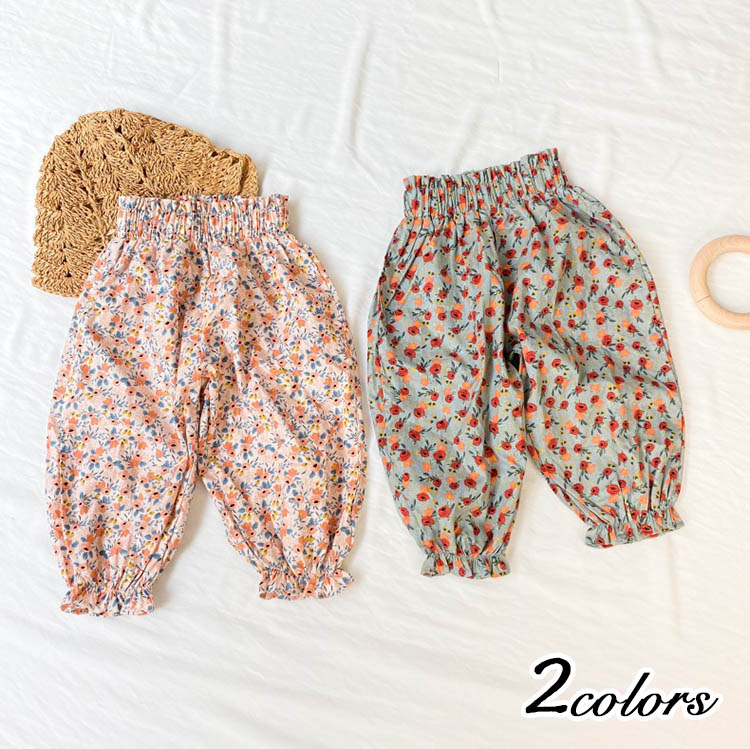 ワイドパンツ 女の子 春 夏 秋 全2色 花柄 子供服 キッズ 80 90 100 110 120 130 ゆったり 子供 女児 子ども服 女の子 ボトム ロングパンツ 長ズボン きれいめ おしゃ