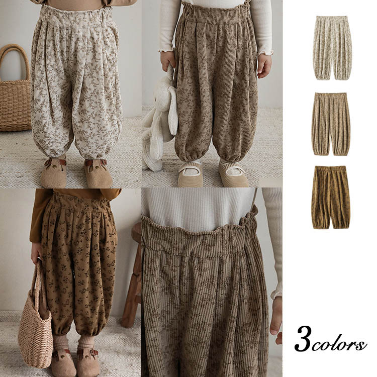 ワイドパンツ 女の子 春 夏 秋 全4色 花柄 子供服 キッズ 80 90 100 110 120 130 ゆったり 子供 女児 子ども服 女の子 ボトム ロングパンツ 長ズボン きれいめ おしゃ