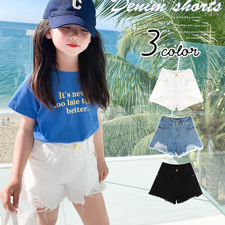 子供服 デニムパンツ 女の子 夏 全3色 ボトムス ショートパンツ カジュアル かわいい おしゃれ 100cm 110cm 120cm 130cm 140cm 150cm 160cm
