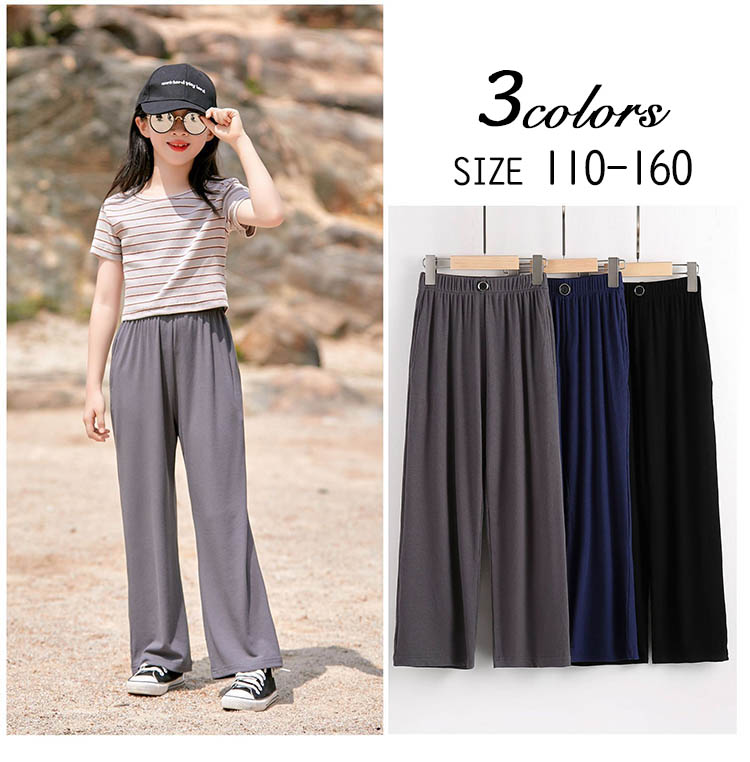 子供服 女の子 ワイドパンツ キッズ ガウチョパンツ ロングパンツ ウエストゴム おしゃれキッズ ベビー マタニティ キッズファッション パンツ