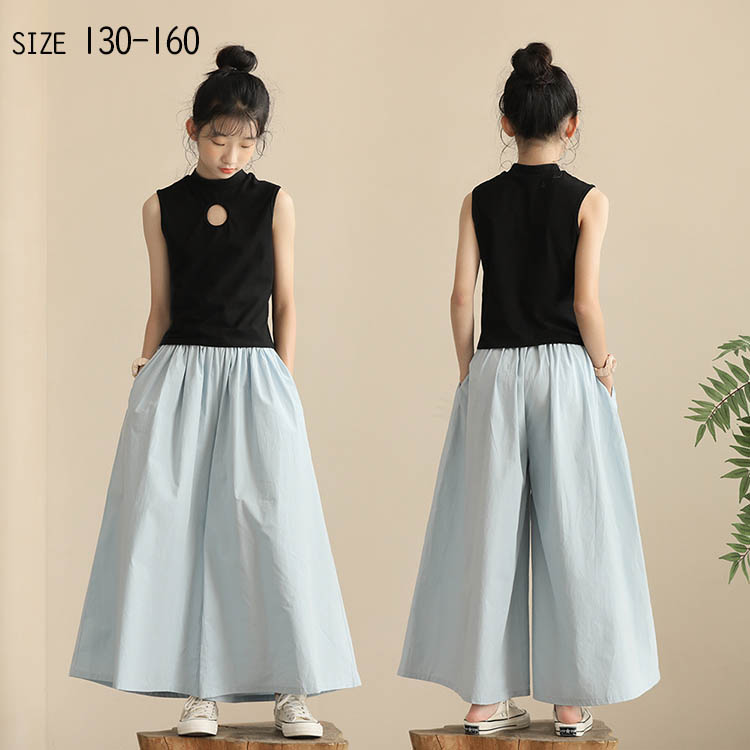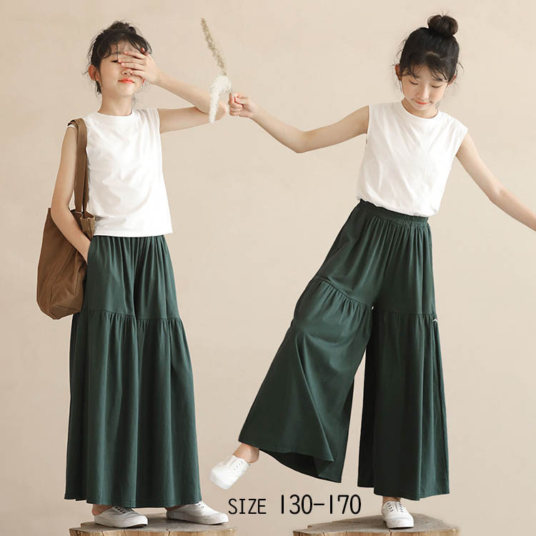 ガウチョパンツ 女の子 春 夏 秋 全2色 ボトムス 120 130 140 150 160 花柄 ワイドパンツ 子供服 カジュアル ゆったり ダンス 長ズボン ガールズ 女児 ジ