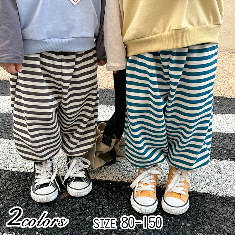 ワイドパンツ キッズ ベビー ロングパンツ 長ズボン ボトムス ズボン 春 夏 ボーダー おしゃれ 80 90 100 110 120 130 140 150 子供服 男の子 女の子