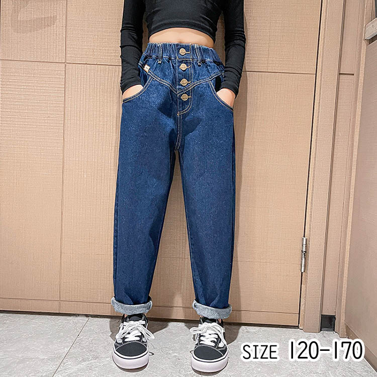 デニムパンツ 女の子 ワイドパンツ 楽デニム キッズ 120 130 140 150 160 170 ゆったり 子供 女児 ロングパンツ ズボン パンツ ボトムス 春秋 子ども服 女の子 きれいめ お