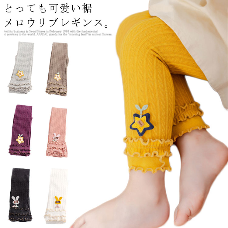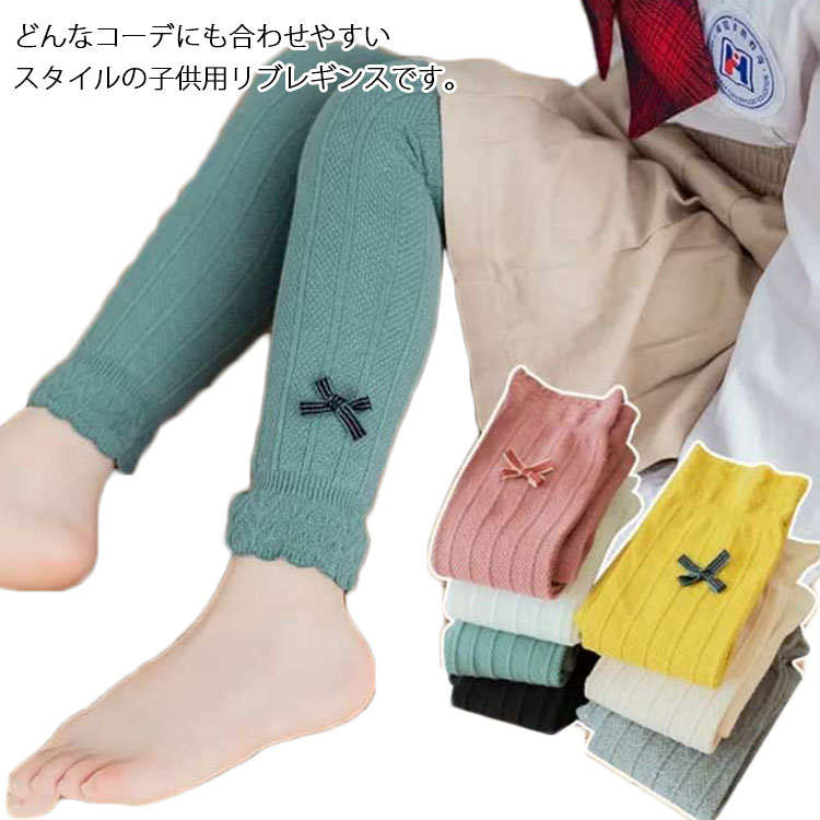 女の子 レギンス 春秋 薄手 子供服 ベビー服 コットン おしゃれ リブ リボン付き 10分丈 フリル裾 キッズ パンツ 綿 シンプル カジュアル ガールズ ボトムス 可愛い ウエストゴム