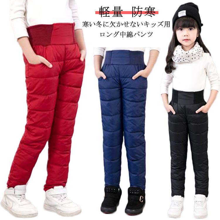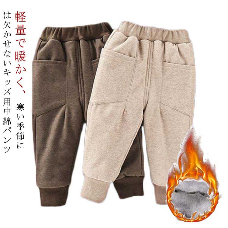 男女兼用 極暖 中綿入り ハイウエスト 暖かい 防寒パンツ 無地 100~140キッズ ベビー マタニティ キッズファッション パンツ