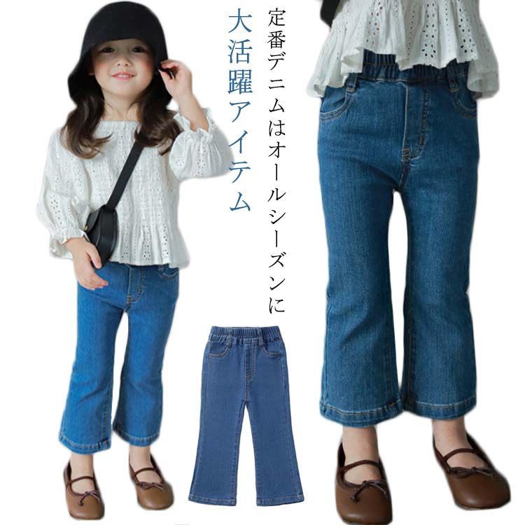 フレアパンツ おしゃれ ジーンズ 女の子 韓国 春秋 子ども服 130 ベビー キッズ ズボン 女児 ジーパン ジュニア 可愛い 子供服 幼稚園 通学 カジュアル 90 100 110 120 着瘦せ