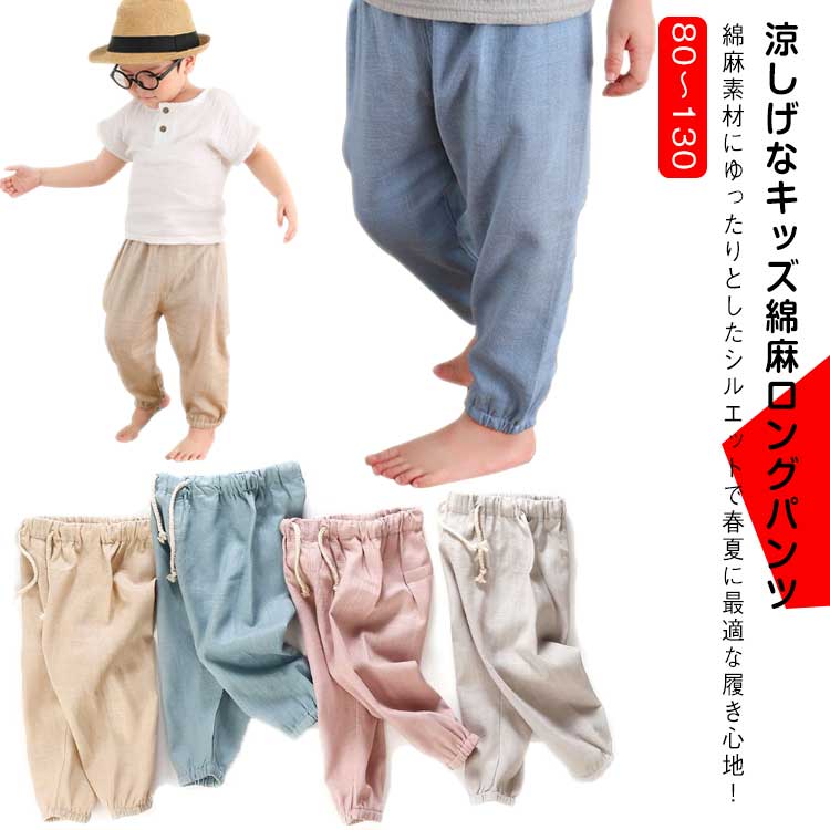 薄手 涼しい 冷房対策 綿麻 子供長ズボン 虫よけ 80~130キッズ ベビー マタニティ キッズファッション パンツ