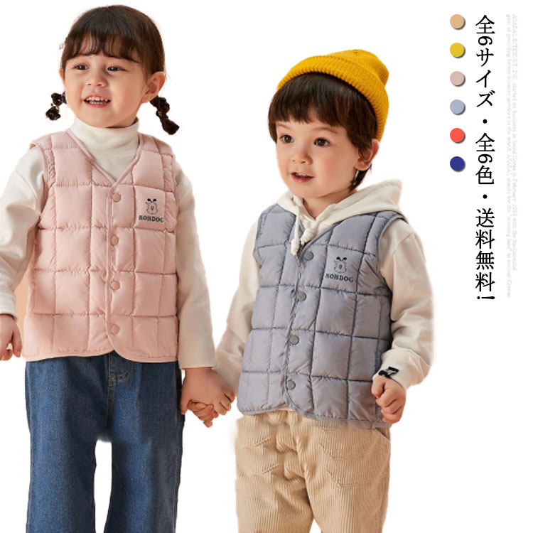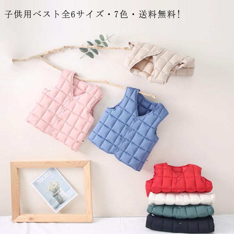 全6サイズ6色 ダウンベスト キッズ アウター ジャケット 中綿ベスト ジレ 羽織り 上着 インナーダウン 秋 冬 暖かい 保温性 防寒対策 中綿 女の子 男の子 子供服 大きいサイズ 女児 子供用