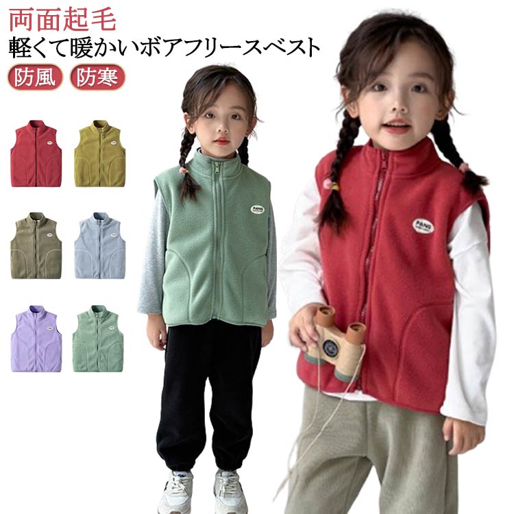 スタンドカラー フリースベスト 子ども 秋ベスト 冬ベスト 暖かい 軽い ベスト インナーベスト 両面起毛 ユニセックス キッズ ボアベスト ふわふわ もこもこ ベスト 通園 通学