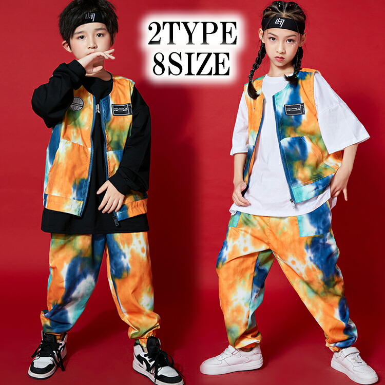 2タイプ 8サイズ タイダイ柄ベスト タイダイ柄パンツ バラ売り 上下別売り 袖なし チョッキ 長ズボン キッズ ダンス 衣装 ヒップホップ レッスン着 練習着 カジュアル ストリート