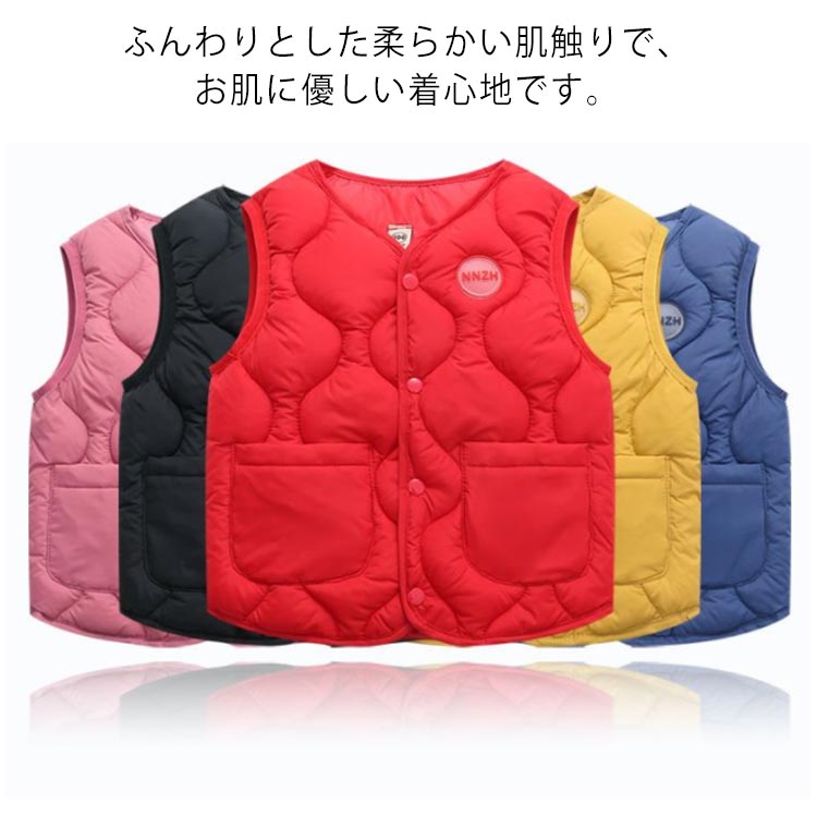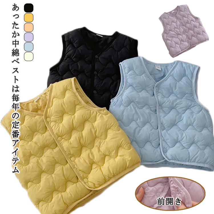 重ね着 暖かい 中綿ベスト 軽い 前開き かわいい キッズ 冷え対策 90~130キッズ ベビー マタニティ キッズファッション トップス ベスト ジレ