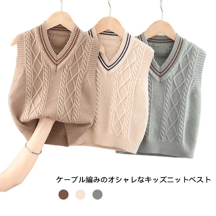 80~120 ニットベスト 男女兼用 子供 ケーブル編み 通園通学 学院風キッズ ベビー マタニティ キッズファッション トップス ベスト ジレ