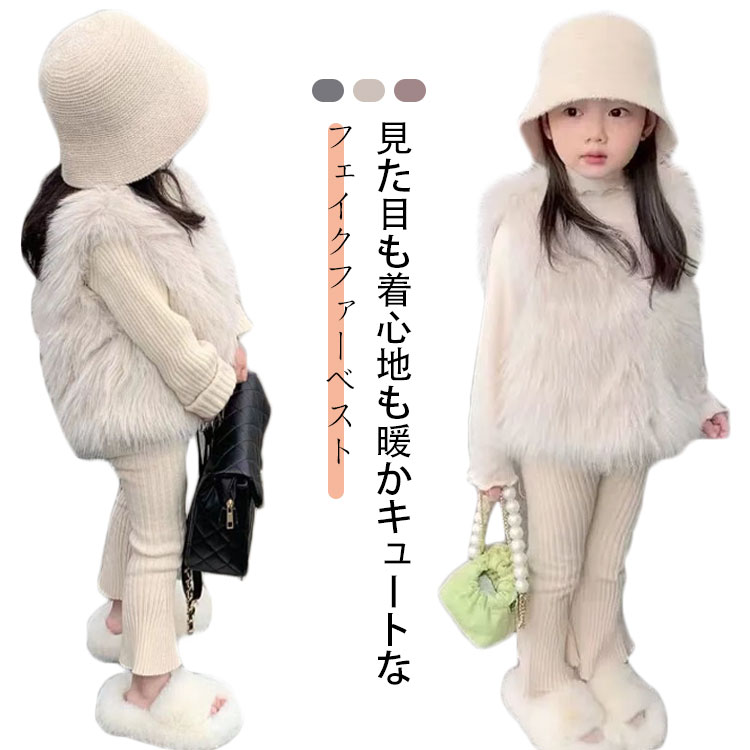 キッズ ファーベスト 羽織り エコファー ふわふわ 秋冬 フェイクファー 女の子 子供服 厚手 暖かい ノースリーブ ベビー服 ベスト ファーベスト ジレ おしゃれ ネック 可愛い こども 前開き