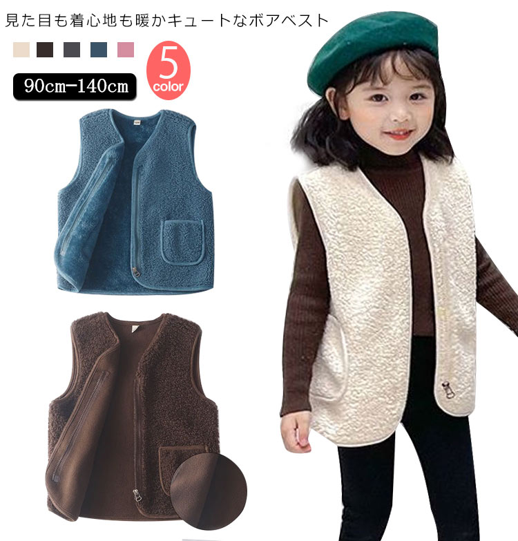 アウターベスト ベスト 子ども服 幼稚園 あったか 通園 ベビー 子ども服 男の子 大きいサイズ 羽織り もこもこ 前開き 通学 ミディアム丈 ポケット付き 女の子 防寒 防寒対策 暖かい 無地 シン