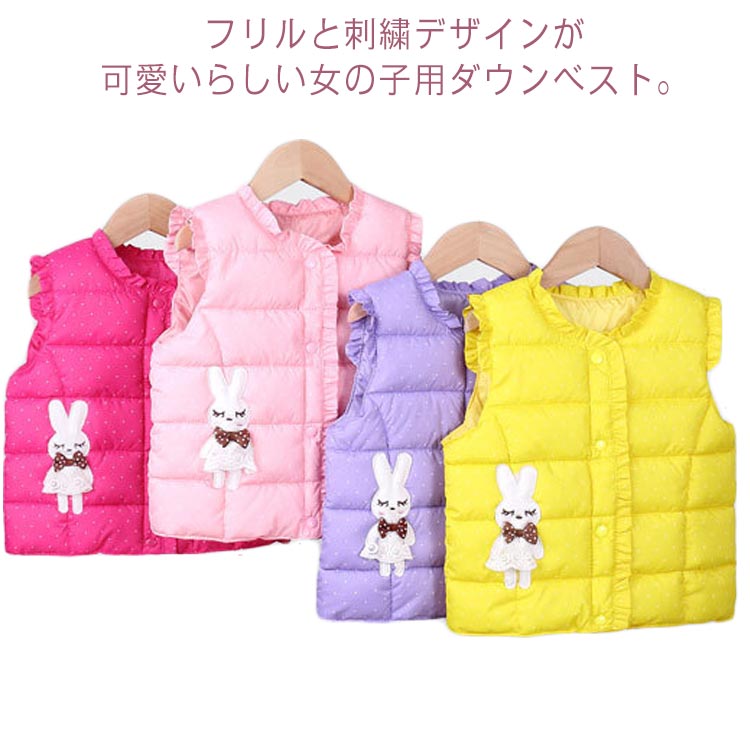 キッズ ダウンベスト フリル襟 女の子 前開き ジップ ドット柄 ファイバーダウン 中綿ベスト 防寒 100~150