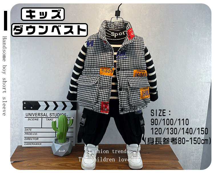 千鳥格子キッズダウンベスト 軽量 おしゃれ キッズアウター 秋冬 厚手 防寒 子供用キッズ ベビー マタニティ キッズファッション トップス ベスト ジレ
