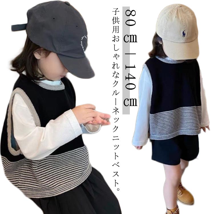 子ども ニットベスト クルーネック プルオーバー 秋服 トップス あったか 韓国子供服 かわいい ユニセックス