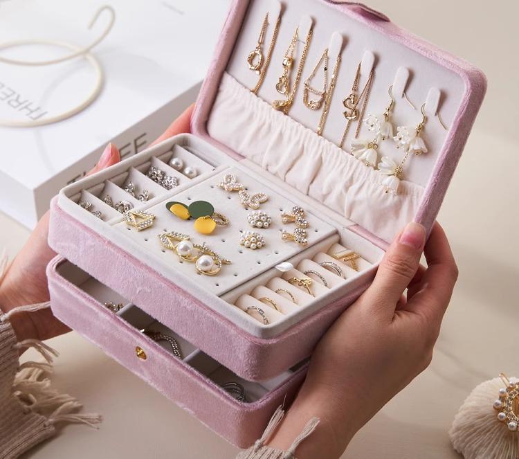 ミニ ジュエリーボックス ベロア調 トラベル 持ち運び 人気 旅行用 家庭用 大容量 仕切り可動式 収納 小物入れ ピアス