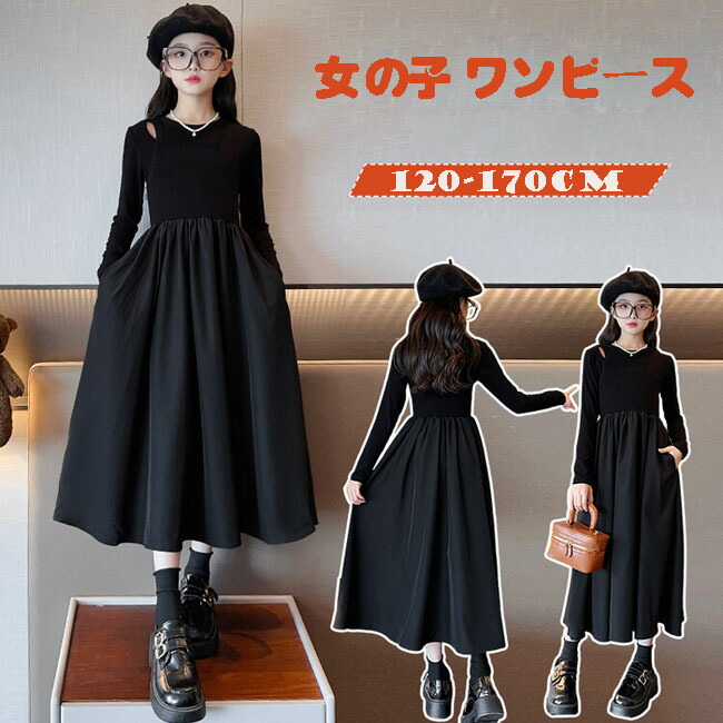 フレア ブラックワンピース 子供ワンピース 発表会 子供服 女の子 ガールズ ワンピース フリル キッズ フォーマル 長袖 キッズワンピース 入園 卒業式 二次会 姫系 お洒落 プリンセス