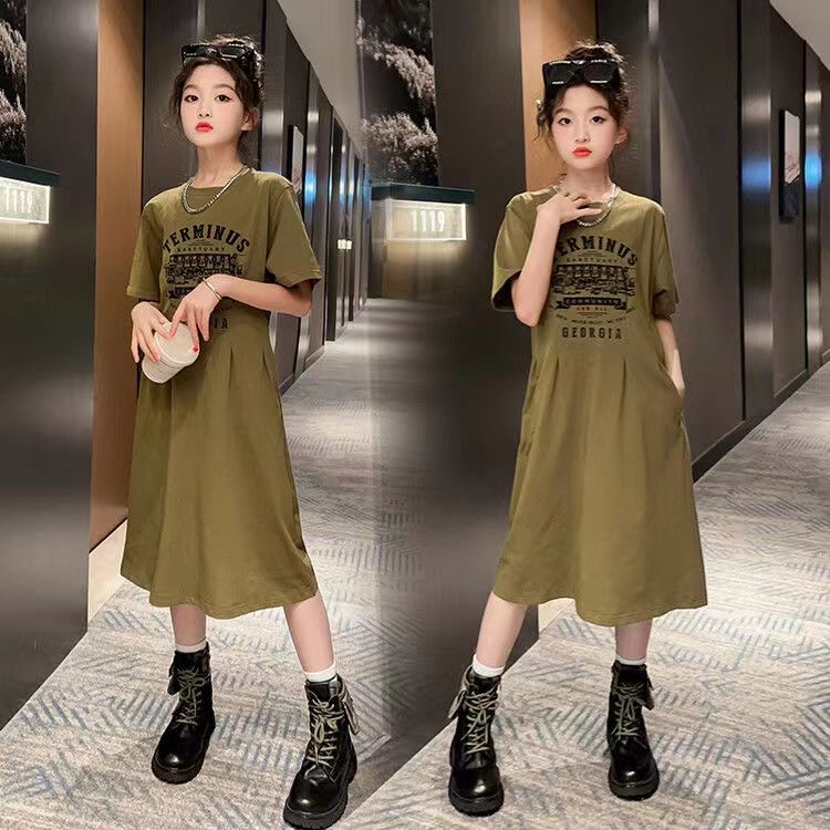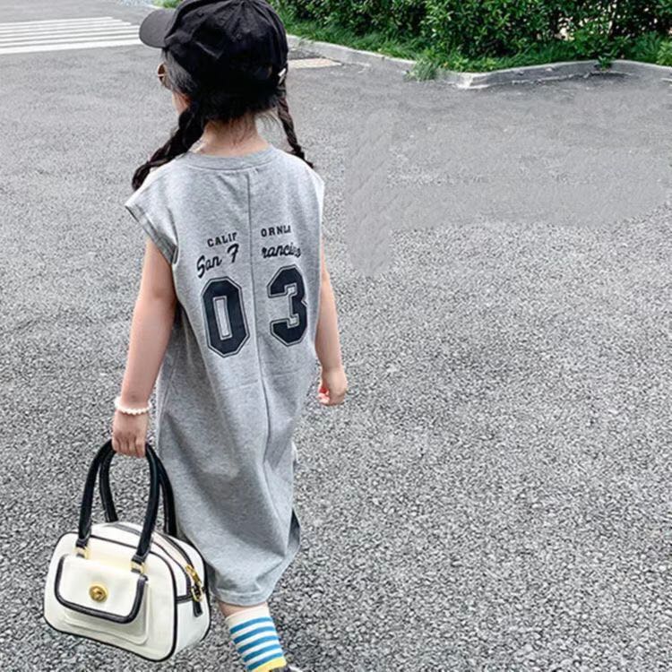 キッズ 子供服 ワンピース ロングワンピース 女の子春夏 ゆったり 可愛い ジュニア 丸首 半袖 英文字 薄手 プリンセスサイズ 120 130 140 150 160 170 043