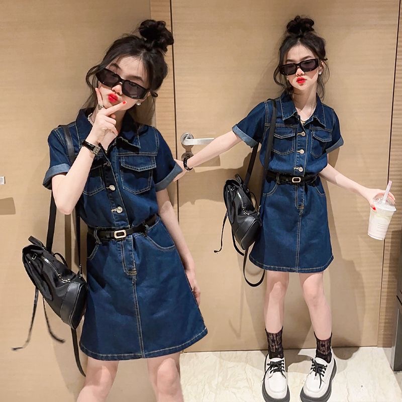デニムワンピース キッズ 子供服 女の子 デニムワンピース 半袖 ベルト付きキッズ ベビー マタニティ キッズファッション ワンピース