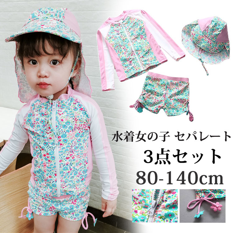 水着 女の子 ラッシュガード キッズ 女の子 セパレート 3点セット 女の子 水着 スイムウェア 水着 女の子 150 キッズ 水着 タンキニ ビキニ 水着セット 温泉