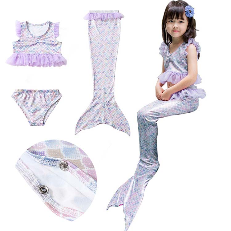 水着 キッズ 女の子 セパレート 110 120 130 140 150 人魚姫 上下セット 3点セット フリルデザイン ビキニ 紫色 人魚水着 ガールズ ジュニア トップス パンツ 人魚尻尾