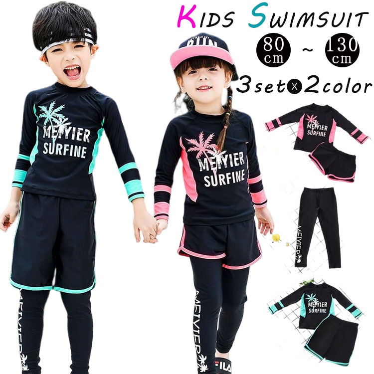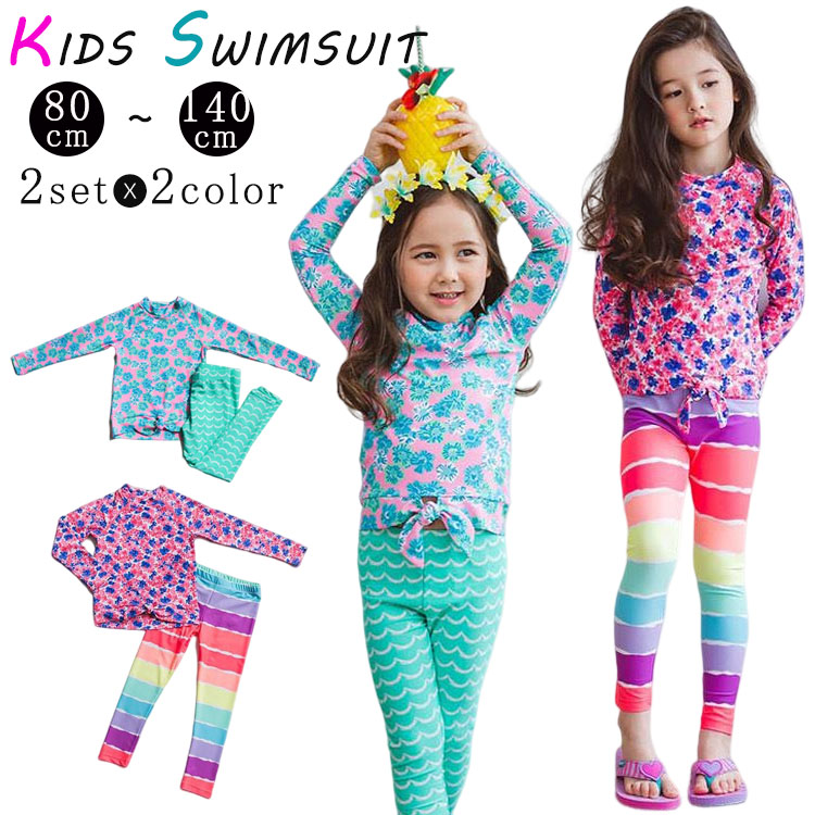 ビキニ焼けの心配なし♪嬉しいラッシュガードセット 子供水着 みずぎ スイムウェア ジュニア ガールズ 女子 女児 女の子 上下セット 日焼け防止