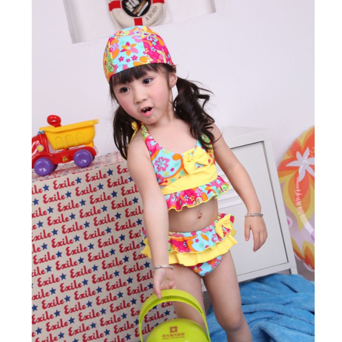 夏の日差しに映えるカラフル水着☆花柄ホルターネック セパレートタイプ 帽子付き☆キッズ ベビー マタニティ キッズファッション 水着