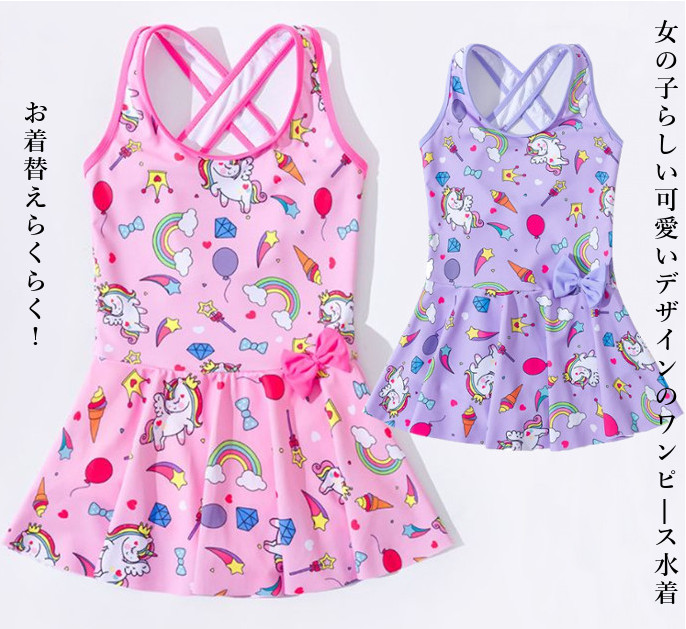 ハート ユニコーン柄の女の子らしい可愛い水着 保育園 小学生 水着 ワンピースタイプキッズ ベビー マタニティ キッズファッション 水着