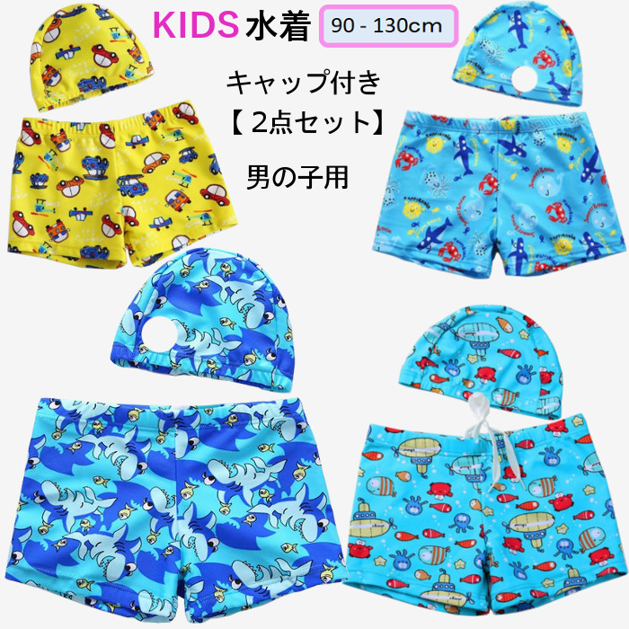 子供 水着 男の子 帽子付き水着 幼稚園 子供水着 男の子 保育園 2点セット 水着 ジュニア 男児 水遊び 水着 90cm 100cm 110cm 120cm 130cm プール 海