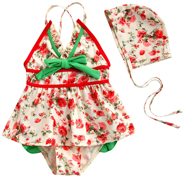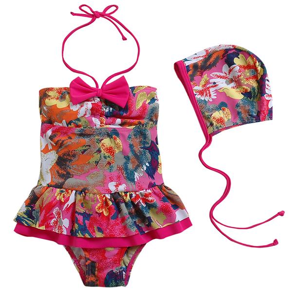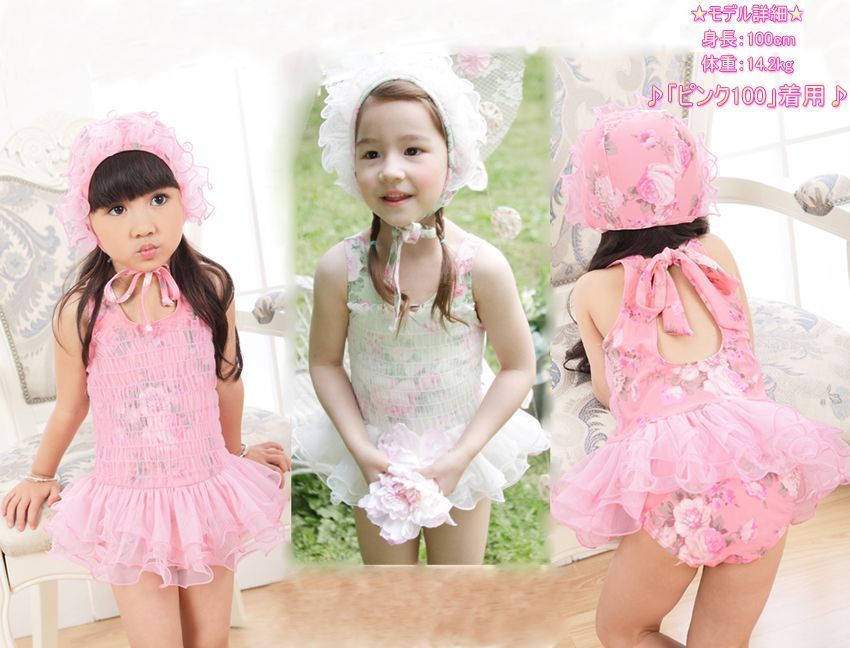 花柄&ベアトップタイプ☆他とかぶらないデザインは海やプールで注目度.1☆後ろホック仕様 帽子付き 子ども 水着 キッズ