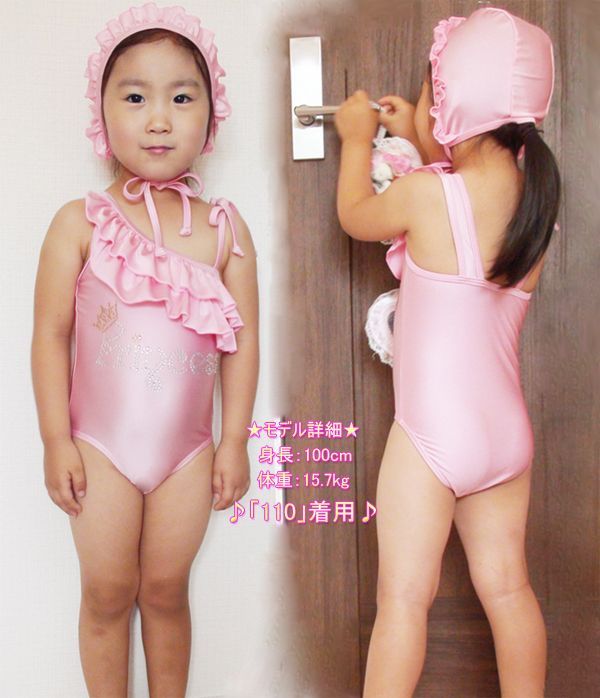フリル&ラインストーン&スイムキャップ付♪超可愛いキラキラ水着2点セットキッズ ベビー マタニティ キッズファッション 水着