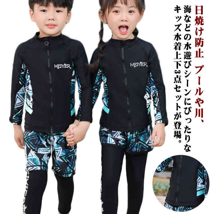 キッズ 水着 3点セット セパレート 女の子 男の子 長袖 ラッシュガード ショートパンツ ロキッズ ベビー マタニティ キッズファッション 水着