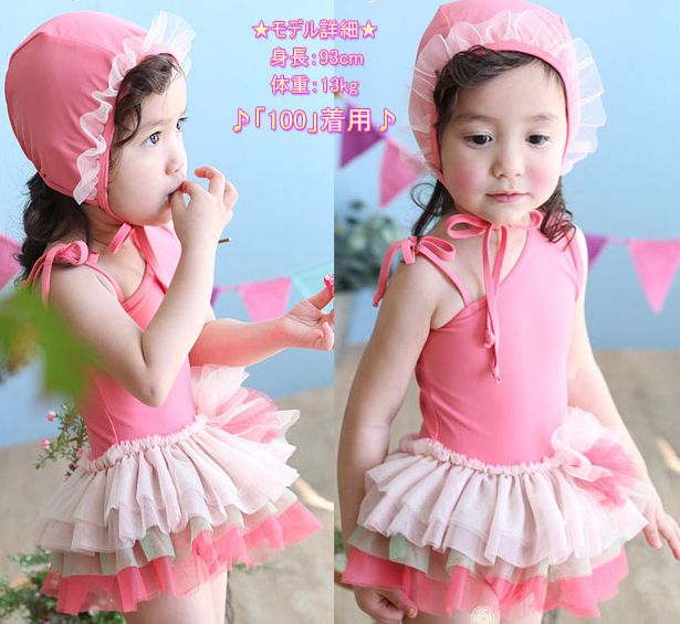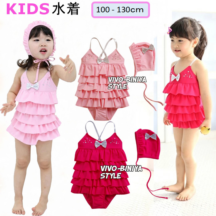 子供 水着 女の子 かわいい 水着 フリル フロント5段フリル水着 帽子付き水着キッズ ベビー マタニティ キッズファッション 水着