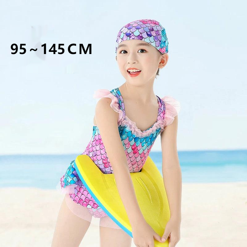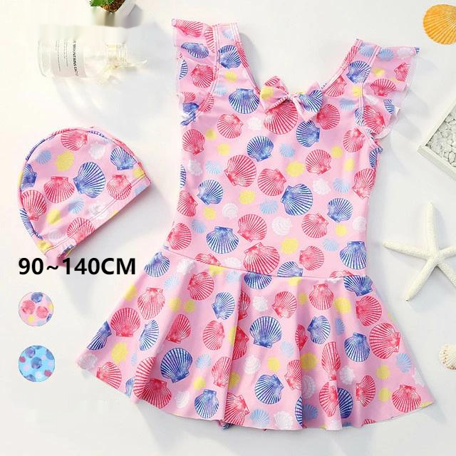 水着 女の子 子供用 ワンピース型 キッズ水着 みずぎ 70 80 90 100 110 120cm キュート 夏のワンピース かわいい フリル キャップ付き c-yongyi-11814-gg