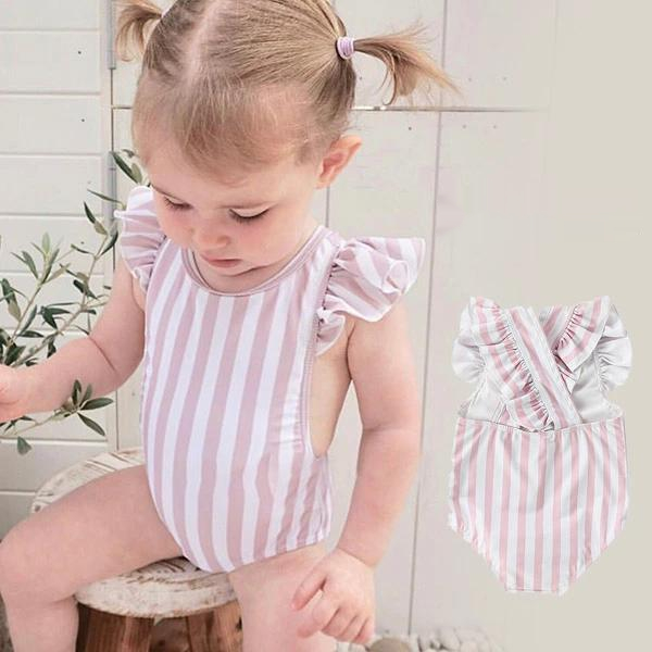 水着 女の子 ベビー水着 女児 赤ちゃん 80 90 100 110 120 130cm レッスン スイムウェア ストライプ キャップ付き 2点セット ワンピース 子供用 こども みずぎ かわいい c