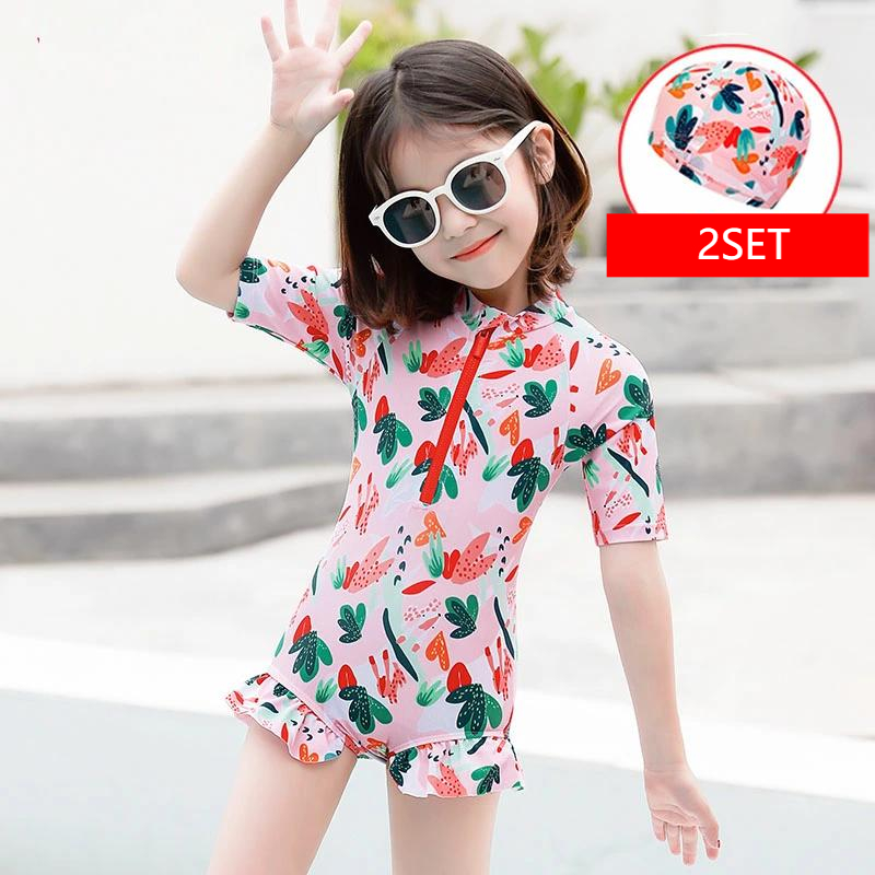 水着 女の子 ベビー水着 スイムウェア 海水浴 女児 こども みずぎ かわいい 赤ちゃんレッスン温泉用 可愛い ワンピース キャップ2点セット セパレート 子供用 c-yongyi-11822-gg