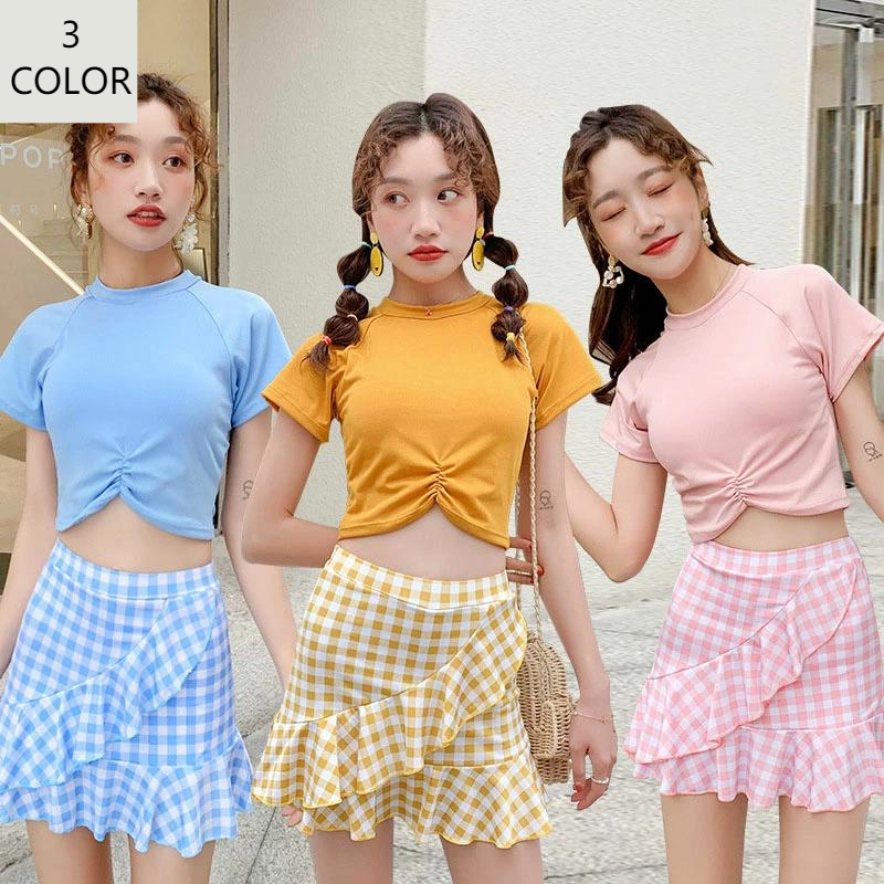 水着 子供水着 トップス スカト ガールズ 女の子 子ども 子供 水着 プリンセス ベビー水着 女児 子供用 海水浴 女子 中学生 高校生 みずぎ赤ちゃん チェック柄 2点セット 全3色 スイムウェア