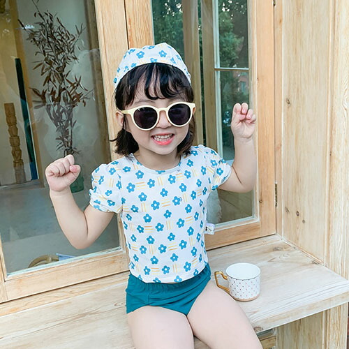 子供水着 2点セット キッズ 花柄 キャップつき 水着 女の子 セパレート キッズ 水着 女の子 ガールズ ジュニア プリンセス ベビー水着 女児 子ども用 半袖 子供 セパレート タンキニ ジュニア