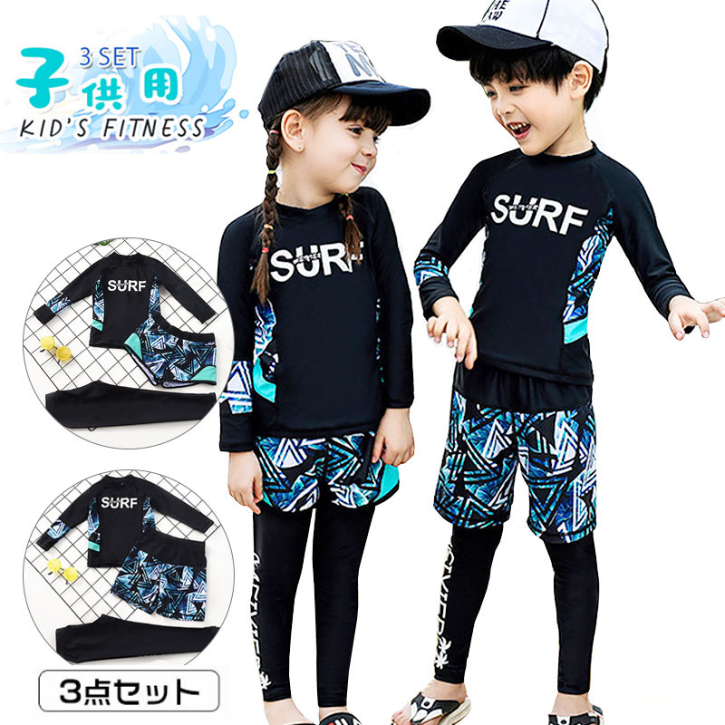 キッズ 水着 男児 女児 スイミング みずぎ 3点セット 速乾 紫外線カット ビーチウェア かっこいい uvカット シンプル 海水浴 子ども 水泳