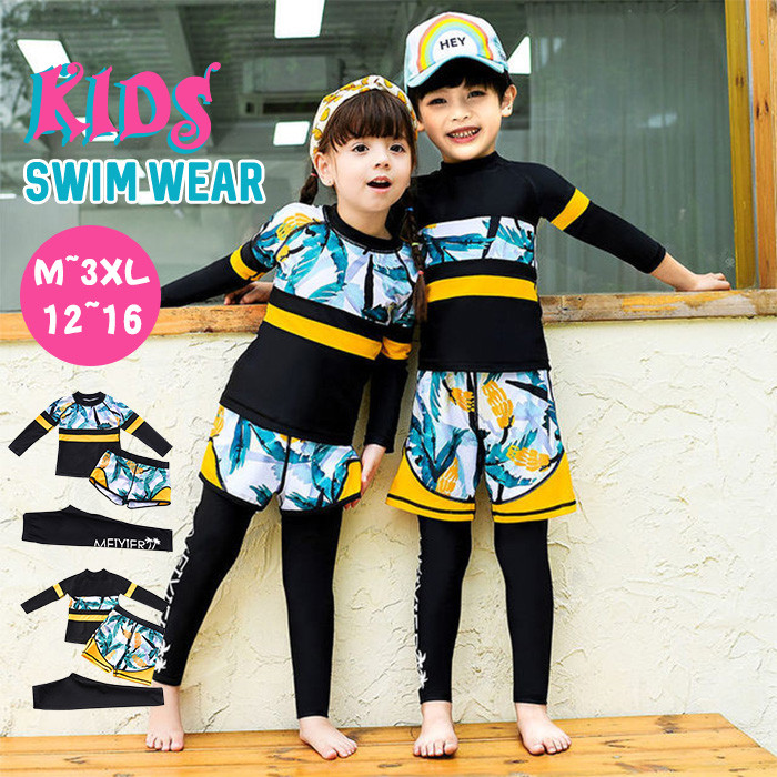 子供 水着 キッズ 水着 kids 子ども 3点セット 女児用 水遊び ジュニア スクール キュート プール ビーチ 海水浴 練習用 ベビー 水遊び 長袖 ラッシュガード 男の子85cm-165cm