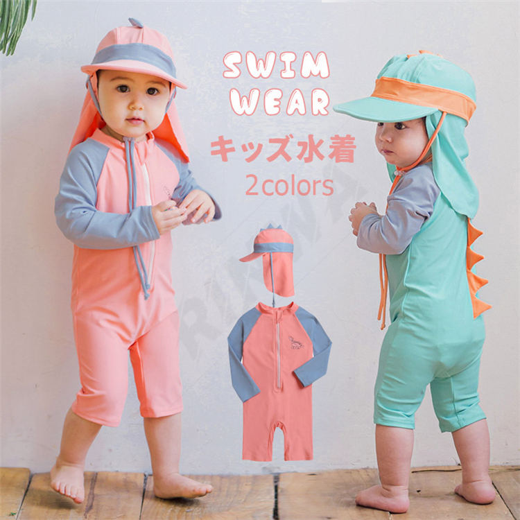 キャップ付き 2点セット オールインワン 水着 子供服 水着 男の子 女の子 温泉用 水泳用 海水浴 水遊び ビーチ キッズ ベビー服 対策 日焼け防止 練習用 ラッシュガード