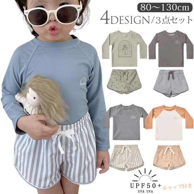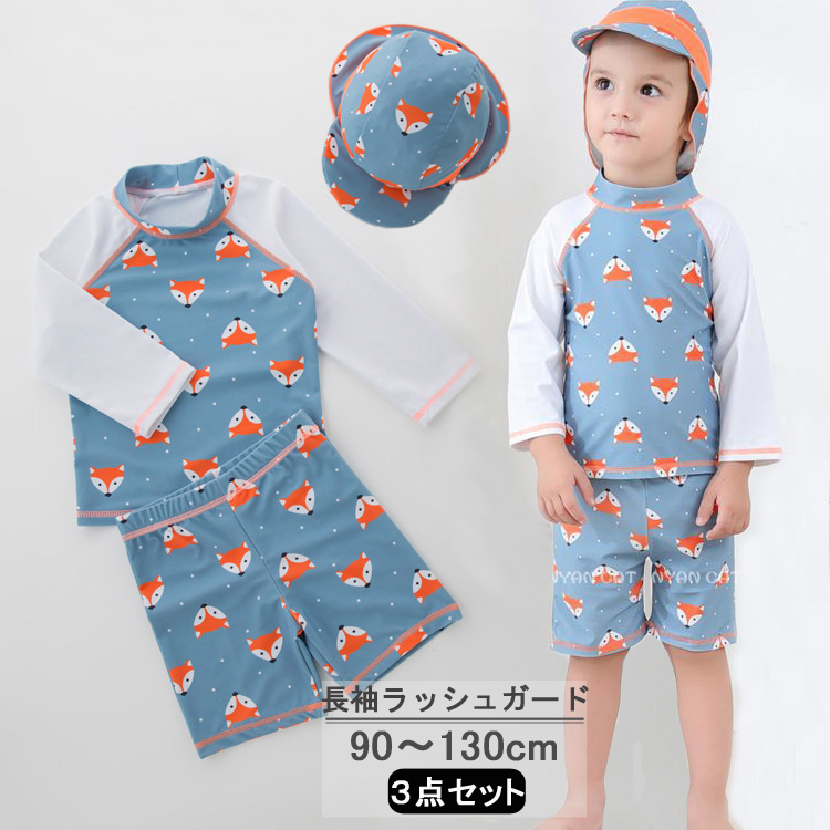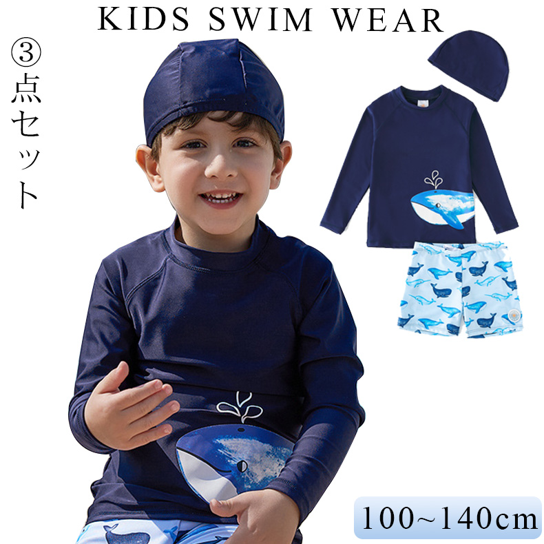 3点セット キッズ ベビー 水着 長袖 ラッシュガード 夏 男の子 セパレート 上下セット 子ども 子供 動きやすい 水着 ジュニア 水遊び プール カット 50+
