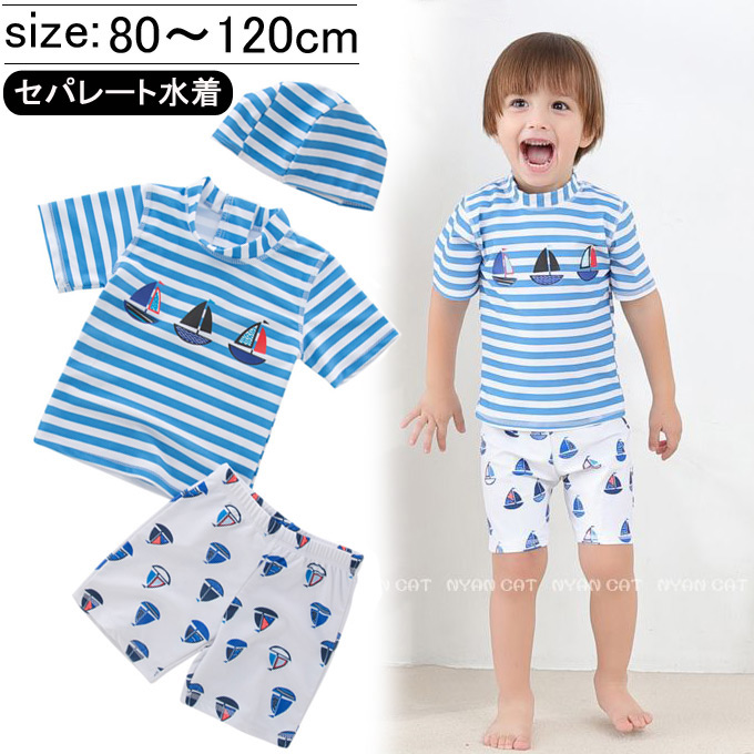 80cm 90cm 100cm 110cm 120cm キッズ 水着 男の子 ラッシュガード パンツ スイムキャップ 水着 ジュニア 水遊び プール トイレに行きやすいセパレート